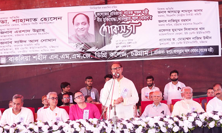 আজ বৃহস্পতিবার বাকলিয়া শহীদ এনএমএমজে ডিগ্রি কলেজ প্রাঙ্গণে কলেজের প্রতিষ্ঠাতা সাবেক মন্ত্রী বীর মুক্তিযোদ্ধা আবদুল্লাহ আল নোমানের শোক সভায় প্রধান অতিথির বক্তব্যে তিনি একথা বলেন।