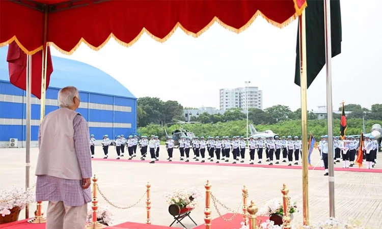 অন্তর্বর্তীকালীন সরকারের প্রধান উপদেষ্টা প্রফেসর মুহাম্মদ ইউনূস আজ বাংলাদেশ বিমান বাহিনীর ঘাঁটি বীর উত্তম এ কে খন্দকারে বাংলাদেশ বিমান বাহিনীর অনুশীলন পর্যবেক্ষণ করেন। প্রধান উপদেষ্টা অনুষ্ঠানে বিমান বাহিনীর সদস্যদের উদ্দেশে বক্তব্য রাখেন।